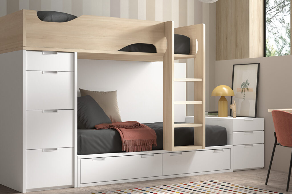 • Besoins de Rangement : Si l’espace est limité ou si vous avez besoin d’organisation supplémentaire, un lit capitaine ou un lit simple avec tiroirs sous le lit peut être une solution inestimable.