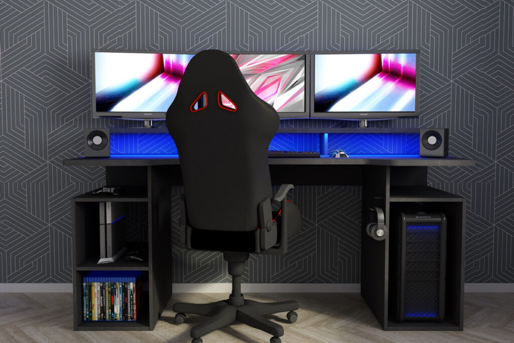 Look for a sturdy surface with ample space for monitors and accessories, good cable management options, ergonomic design, and durable materials. Some also feature extras like cup holders or headphone hooks.